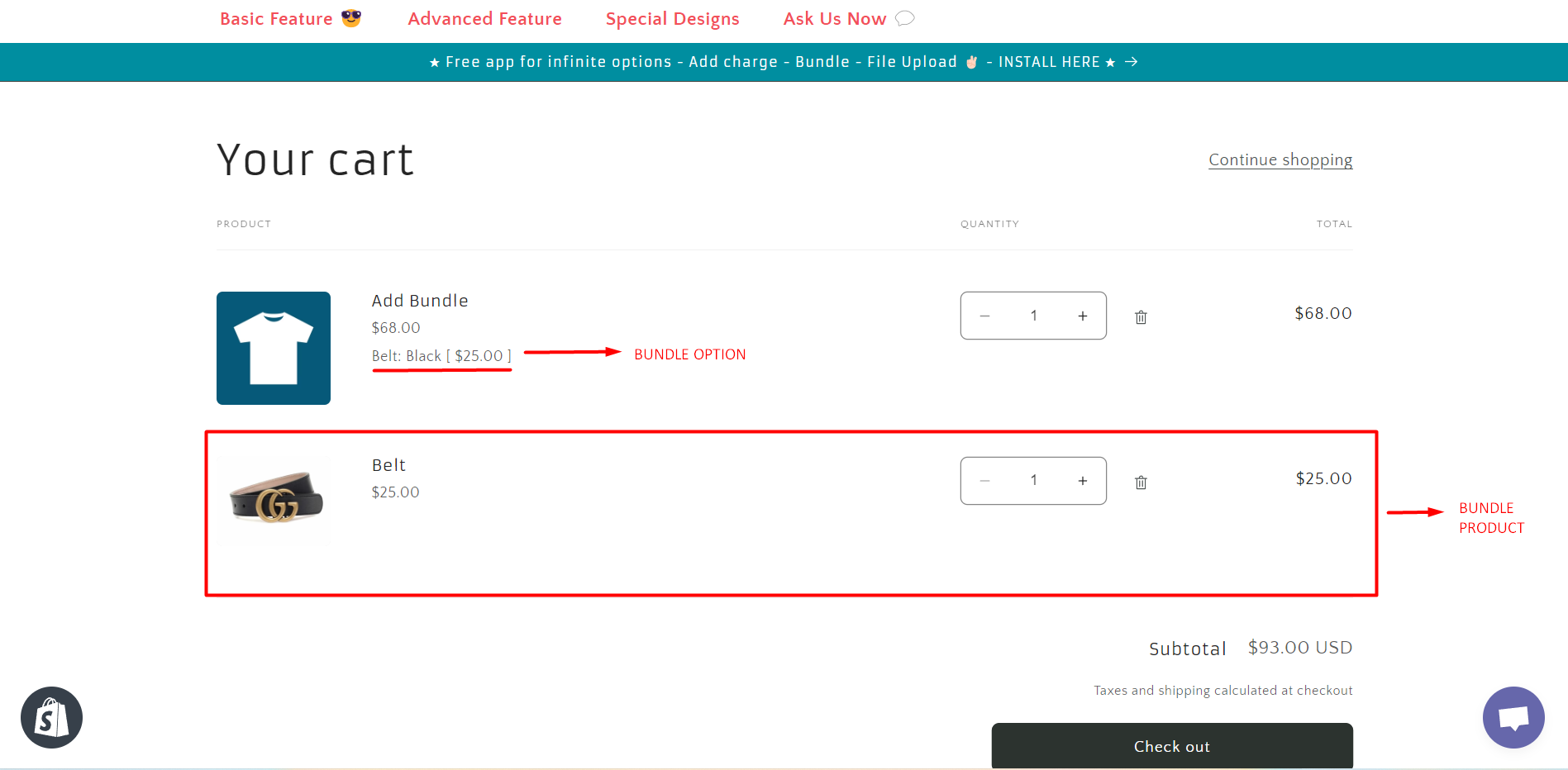 **-> Here is how the Bundle option will show on the cart page.**&#x20;