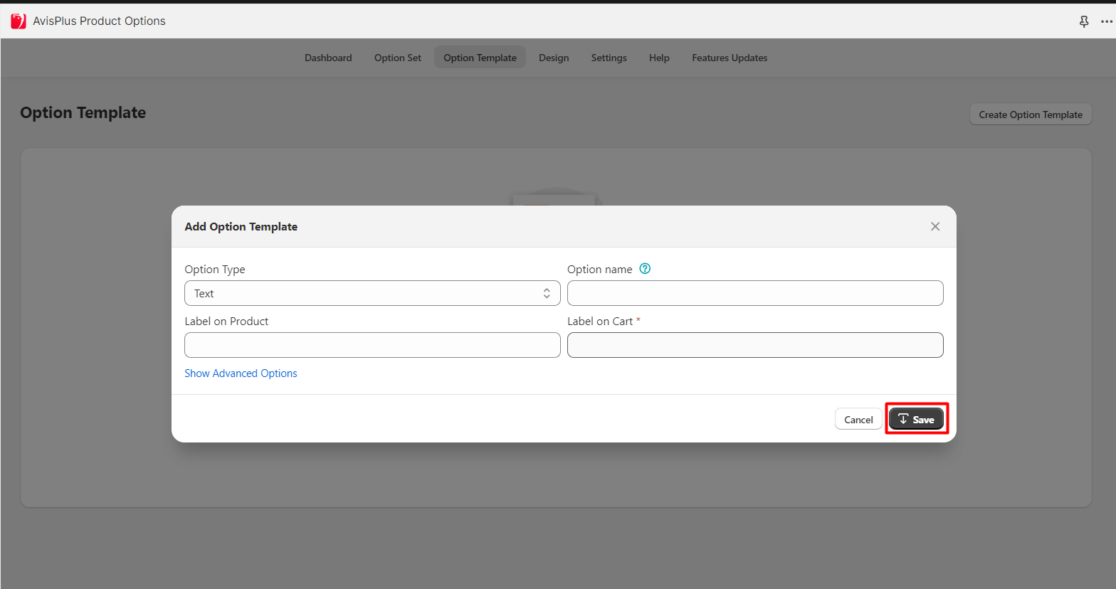2. Fill in the Option detail in the blank and hit Save after all the information is filled